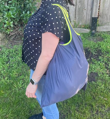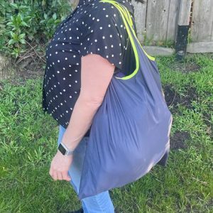 Se pliega su bolsillo interno, capacidad 10 kg.